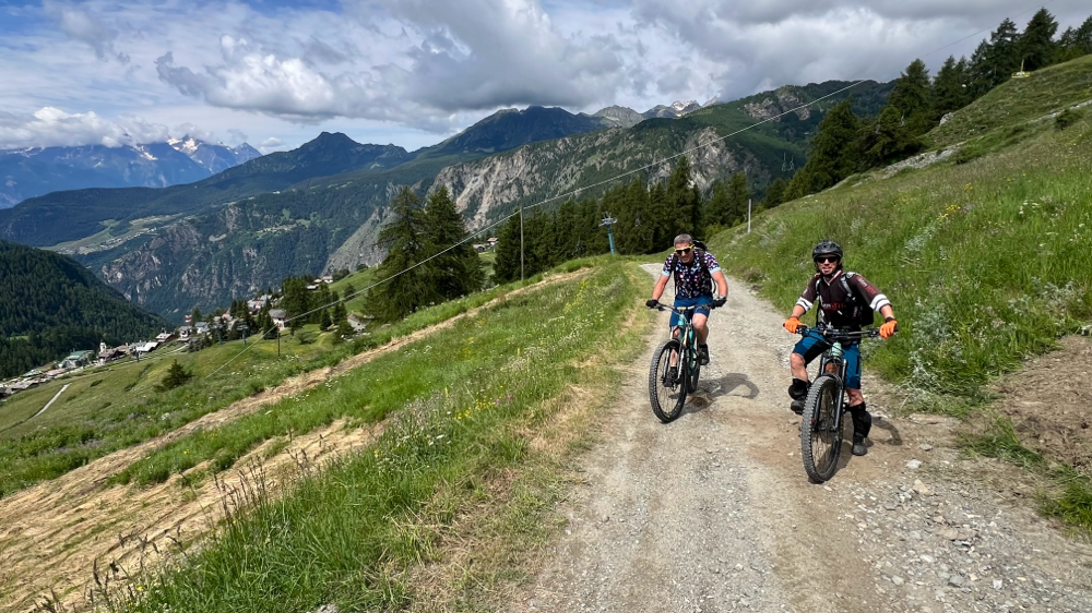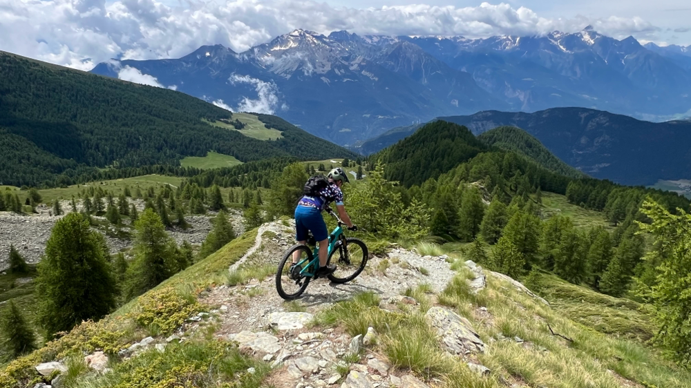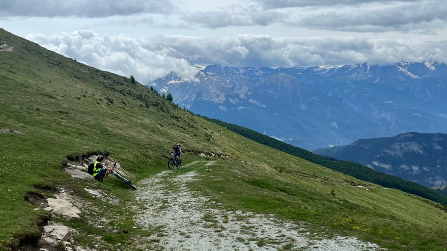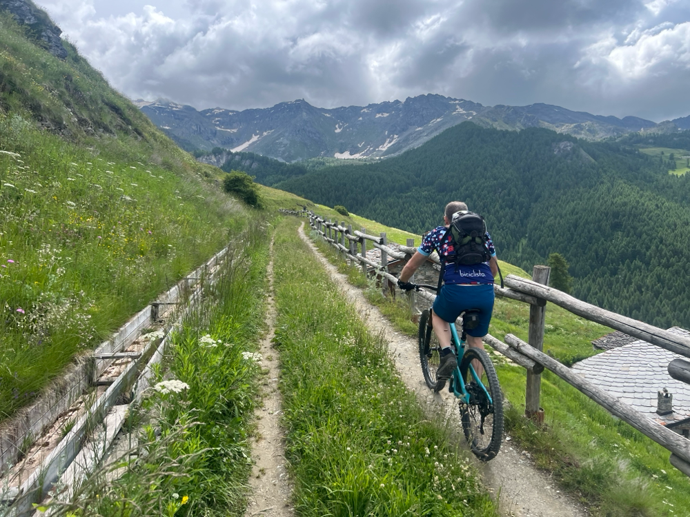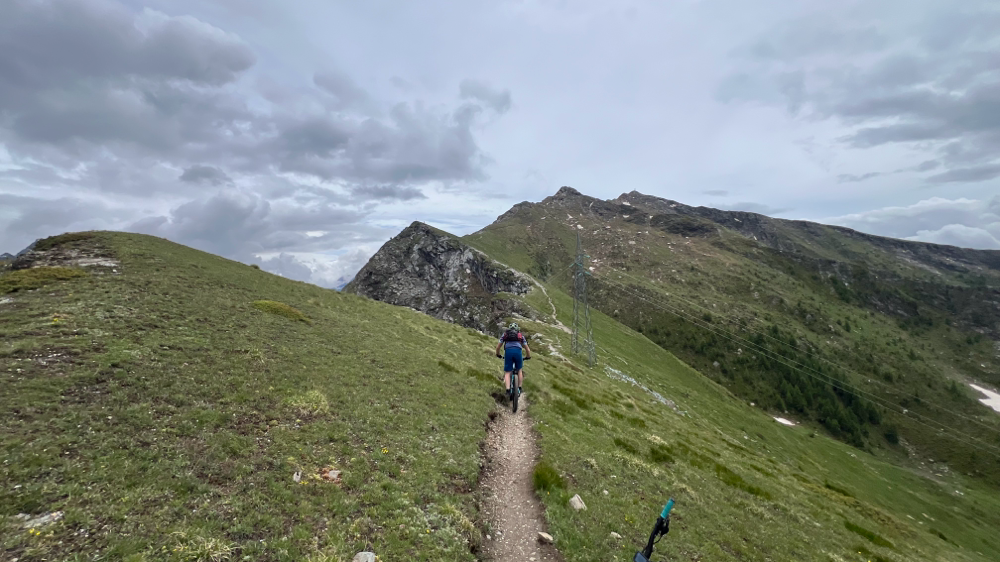 breve discesa tecnica per agganciare la strada bianca che sale da Promiod