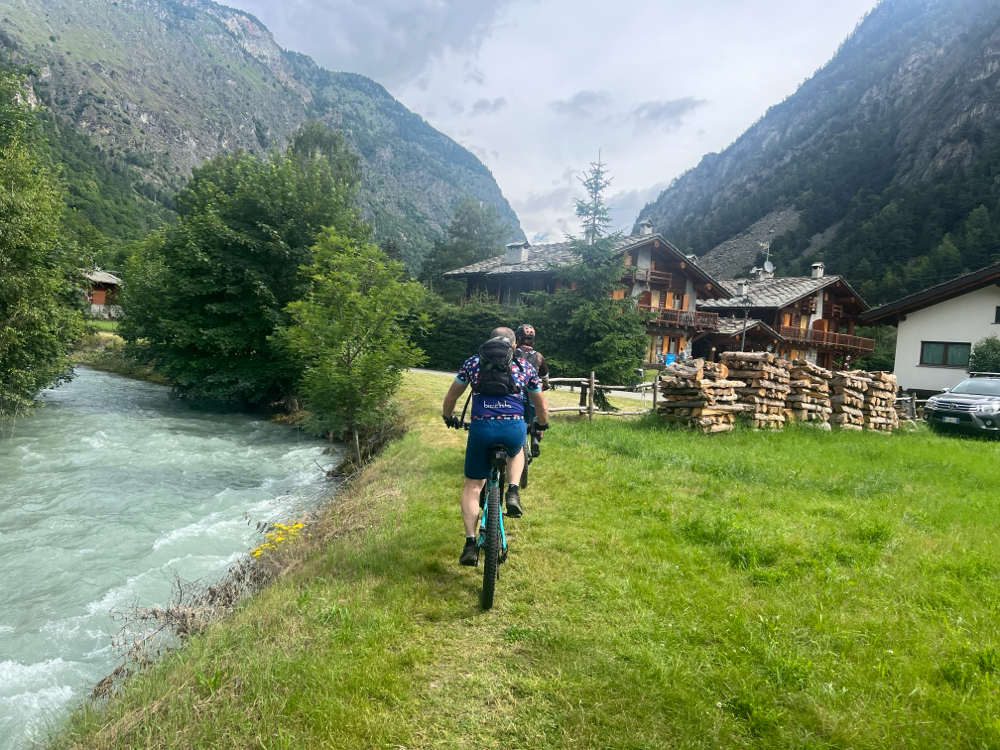 da Antey costeggiano il fiume Marmore fino ad attraversare Buisson per prendere la funivia che ci porterà fino a Chamois